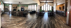The Clubhouse offers seating for over 40 guests with six (30x60") dining room tables, in addition to sofas and chairs. The Clubhouse also features a complete working kitchen with a countertop bar and seating. Additional amenities include a working fireplace, wifi, television, complimentary folding tables, and folding chairs. The Clubhouse has a maximum occupancy of 75 people.